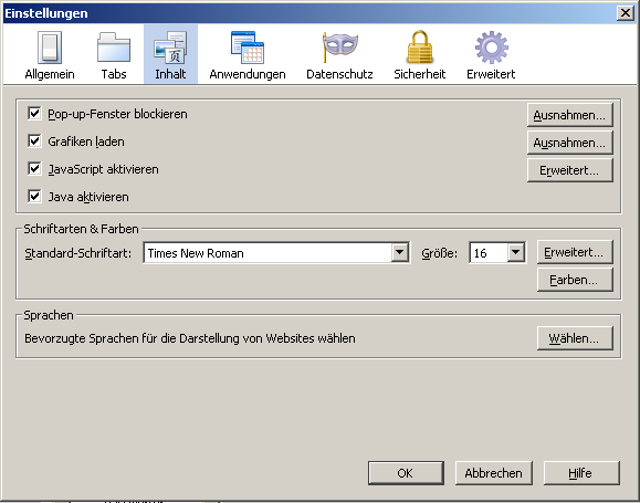 Die Standardeinstellungen von Cookies können im Firefox ab Version 3.5.